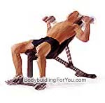 The incline dumbbell presses are performed very similar to the flat dumbell presses, except its done on an incline bench:
